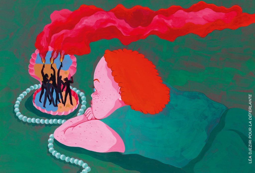 CAMÉLIA JORDANA Il y a la question de la complicité, du partage au quotidien, mais aussi le fait que le seul lien à nos racines passe par ces gens-là, avec lesquels on ne sait pas parler. C’est-à-dire qu’il ne nous reste que notre gueule. Cette gueule qui fait que tu n’es pas admis·e, que tu n’es pas accepté·e, que tu déranges, que tu es microagressé·e quotidiennement, c’est tout ce que t’as. Et encore. Moi, ça fait deux ans qu’officiellement je porte mes cheveux frisés, et un an que je ne veux plus les raidir, sauf pour le travail. Ça m’a pris presque trente ans, toute une vie, pour en arriver là ! C’est névrotique, ce rapport à notre féminité et à notre beauté qui passe par le white washing (5) total de nos physiques. Donc, il n’y a pas seulement la disparition de notre langue et l’invisibilisation des héroïnes et des héros de notre culture : ça va jusqu’à nos gueules. C’est une forme de négation totale. Et on a beau tout faire pour « s’intégrer » – même si là, on parle carrément d’assimilation –, ça ne change rien.