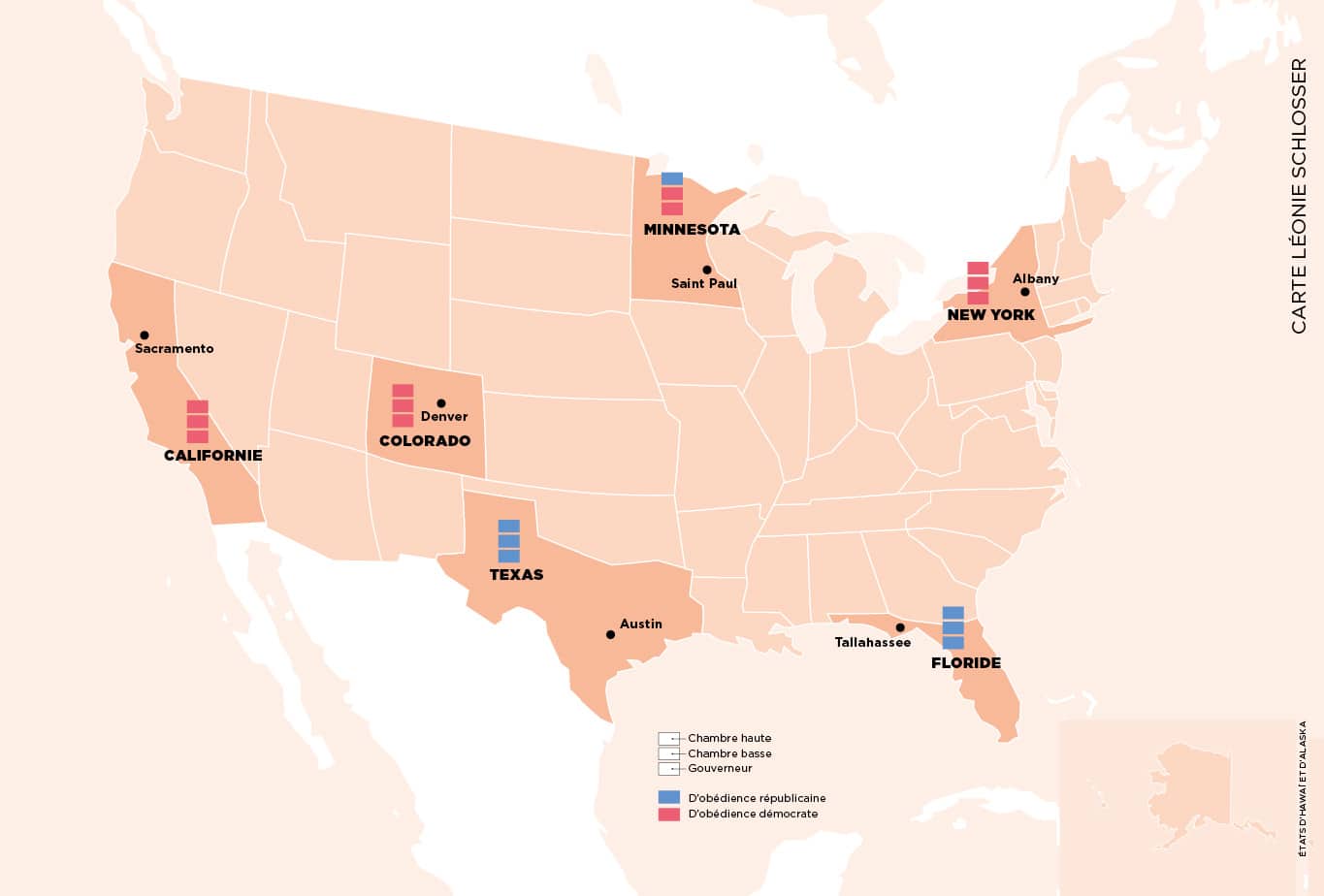 En mai 2022, l’organisation progressiste LGBT+ Victory Institute annonçait vouloir déployer un « mur arc-en-ciel » (les couleurs LGBT+) en déposant dans une douzaine d’États des projets de loi susceptibles de prolonger la dynamique californienne de sanctuarisation des droits LGBT+. En mars 2023, le gouverneur démocrate du Minnesota, Tim Walz, a donc signé (ci-contre) un décret garantissant la protection des mineur·es trans venu·es bénéficier de soins d’affirmation de genre dans son État. Dans l’État de New York, une législation similaire est en cours de discussion.